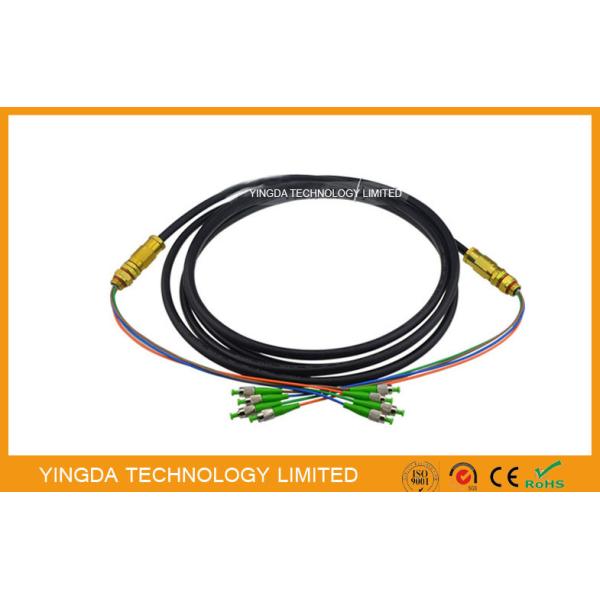 FC / APC 4 Core Optical Fiber Pigtails Patch Cord Cable Waterproof Black , Length Customized Images |
