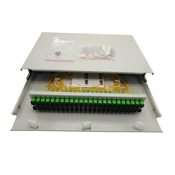 Indoor 19 inch standard size sliding drawer type Fiber optic patch panel is the auxiliary equipment for terminal distribution / wiring in optical fiber transmission communication network, and suitable for indoor optical cable splicing directly and branch connection, and protection of the optical fiber.